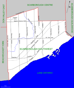 ![]() Scarborough Southwest in relation to the other Toronto ridings | |||