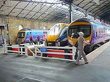 Scarborough railway station, formerly Scarborough Central, is an English station serving the seaside town of Scarborough, North Yorkshire. It lies 42 miles (68 km) east of York and is one of the eastern termini on the North TransPennine route operated by TransPennine Express. The station is also at the northern end of the Yorkshire Coast Line, and has the longest station seat in the world at 152 yards (139 m) in length.[1]
