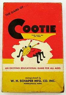 William Herbert "Herb" Schaper was a Minnesota postman who created, developed, and manufactured a children's game known as Cootie.[1] After whittling a fishing lure in 1948, he molded the object in plastic, fashioned a game around it, and formed the H. W. Schaper Mfg. Co., Inc. to manufacture and publish the game. In the fall of 1949, the game was launched on the market,[1] and sold through Dayton's department stores.[2] Schaper sold 5,000 Cootie games by 1950, and over 1.2 million games by 1952.[2][3]