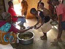While the food items needed for school feeding programs may be imported into the country from anywhere throughout the world, an increasing number of countries and organizations are looking to expand what is called “home-grown school feeding,” which requires that provided food is produced and purchased within a country to the greatest extent possible. These programs provide an opportunity for children to receive improved nutrition and educational opportunities while also allowing smallholder farmers to benefit from access to a market with stable, structured, and predictable demand.[6][7] The New Partnership for Africa’s Development (NEPAD) guided governments in Sub-Saharan Africa to include home-grown school feeding as a critical intervention for the food security facet of the Comprehensive Africa Agriculture Development Programme (CAADP). Several countries, including Côte d'Ivoire, Ghana, Kenya, Mali and Nigeria are currently taking part in home-grown school feeding programs.[8]