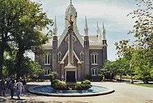The Seagull Monument is a small monument situated immediately in front of the Salt Lake Assembly Hall on Temple Square, in Salt Lake City, Utah. The Monument commemorates what some members of The Church of Jesus Christ of Latter-day Saints (the LDS Church, see also "Mormons") call the Miracle of the Gulls.