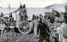 Since this was to be a full-scale invasion, it required long-term planning, stock-piling and conscription.[21] It was decided that Xerxes' Pontoon Bridges were to be set up to allow his army to cross the Hellespont to Europe, and that a canal should be dug across the isthmus of Mount Athos (rounding which headland, a Persian fleet had been destroyed in 492 BC).[22] These were both feats of exceptional ambition, which would have been beyond any contemporary state.[22] However, the campaign was delayed one year because of another revolt in Egypt and Babylonia.[23]