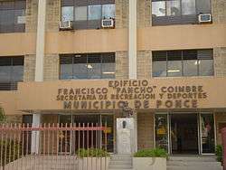 Secretaría de Recreación y Deportes Francisco "Pancho" Coimbre is a sports complex, located on Avenida Las Americas in Ponce, Puerto Rico. It features a 3-story gymnasium building, a gazebo, and a natatorium.