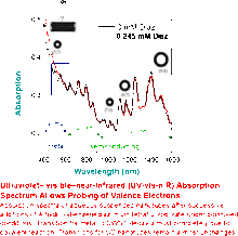 Optical absorption monitors the valence (v) to conduction (c) electronic transitions denoted Enn where n is the band index. The E11 transitions for the metallic nanotubes occur from ~440 to 645 nm. The E11 and E22 transitions for the semiconducting nanotubes are found from 830 to 1600 nm and 600 to 800 nm, respectively. These separated absorption features allow for the monitoring of valence electrons in each distinct nanotube. Reaction at the surface result in localization of valence electrons makes them no longer free to participate in photoabsorption which results in decay of the spectrum features.[3][5]