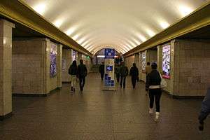Sennaya Ploshchad (Russian: Сеннáя плóщадь, Sennaya Square) is a station on the Moskovsko-Petrogradskaya Line of Saint Petersburg Metro, opened on July 1, 1963. It is a deep underground pylon station. Its surface vestibule is situated near Sennaya Square, which gives its name to the station. Construction of the entrance to the station was given as a pretext for demolition of the Saviour Church on Sennaya Square. Before 1992 both the square and the station were known under the name Ploshchad Mira (Peace Square). In June 1999 the concrete canopy of the surface vestibule collapsed, killing seven. The station is connected to the station Spasskaya of the Pravoberezhnaya Line and Sadovaya of the Frunzensko-Primorskaya Line via an underground transfer corridor.