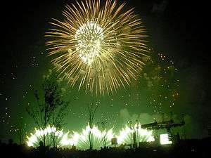 About 100,000 fireworks went off, and more than a million of viewers visited every year.[4] Seoul International Fireworks Festival is the typical festival in Korea. There are about 20,000 visitors at main event hall at Yeoido.[5] Moreover, there are about 100,000 visitors near Wonhyo Bridge, Hangang Bridge, Hangang Park Ichon Area and more places. In total, about 120,000 visitors enjoyed the festival.[6][7][8]