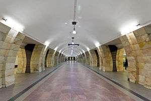 Serpukhovskaya (Russian: Серпуховска́я) is a Moscow Metro station in the Zamoskvorechye District, Central Administrative Okrug, Moscow, Russia. It is on the Serpukhovsko-Timiryazevskaya Line. The station opened on November 8, 1983. Serpukhovskaya is 43 metres (141 feet) underground. Its name originates from the namesake street, which in turn originates from the historic town of Serpukhov.