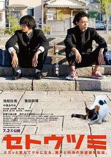 Setoutsumi (セトウツミ) is a Japanese film directed by Tatsushi Ōmori and starring Sosuke Ikematsu and Masaki Suda. It is a live action film adaptation of the Japanese manga series of the same name written and illustrated by Kazuya Konomoto.[1] The film is scheduled for release in Japan by Broadmedia Studio on July 2, 2016.