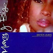 "Seven Days" is a soul song written and produced by Malik Pendleton and released as a single by American R&B singer Mary J. Blige as the fourth release off her 1997 album Share My World on March 20, 1998. The Mary J. Blige album is the fourth and final single from MCA Records.