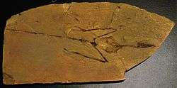 Sharovipteryx ("Sharov's wing", known until 1981 as Podopteryx, "foot wing"), is a genus of early gliding reptiles containing the single species Sharovipteryx mirabilis. It is known from a single fossil and is the only glider with a membrane surrounding the pelvis instead of the pectoral girdle. This lizard-like reptile was found in 1965 in the Madygen Formation, Dzailauchou, on the southwest edge of the Fergana valley in Kyrgyzstan, in what was then the Asian part of U.S.S.R.[1] dating to the middle-late Triassic period (about 225 million years ago). The Madygen horizon displays flora that put it in the Upper Triassic.[1] An unusual reptile, Longisquama, was also found there.