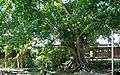 A photograph of the centrepiece fifty-year-old tree at Shearwater, around which the main buildings have been constructed.