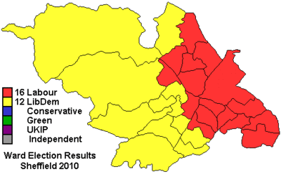 | Map showing the results of the 2010 Sheffield City Council elections. | |||||||||||||||||||||||||||||||||||||||||||||