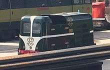 In December 1929, a 4 ft 8 1⁄2 in (1,435 mm) standard gauge 0-6-0 diesel locomotive was obtained to work the Ravenglass-Murthwaite section. It was built by Kerr Stuart (works number 4421) and had a six-cylinder, 90 horsepower (67 kW), McLaren-Benz engine. Transmission was mechanical and final drive was by roller chains. In 1955 it was sold, through a dealer, to the National Coal Board for use at Wingate Grange Colliery, Durham. A new Dorman engine of 90 horsepower (67 kW) was fitted in 1960.[5] It is now preserved at the Foxfield Light Railway,[6] restored to original external condition, and was displayed at Ravenglass in the summer of 2000.