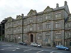 The Shire Hall is a building in Newport, south Wales which served as the County Hall for Monmouthshire until the Monmouth County Council was wound up in 1974. It continued to be used as local government headquarters until 1978 and has subsequently been converted into offices. The current buildings were erected in 1902 and extended in 1913, adding the top storey to the Shire Hall and adjoining Queen's Chambers. The buildings have been Grade-II listed since 1998[1] in recognition of their historic and architectural qualities. The Shire Hall has been described by conservationists Cadw as an impressively-designed Edwardian civic building.
