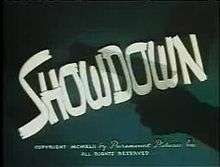 Showdown (1942) is the eleventh of seventeen animated Technicolor short films based upon the DC Comics character Superman. Produced by Famous Studios, the plot focuses on a criminal who impersonates Superman to commit crimes for a gangster. The short was released to theaters by Paramount Pictures on October 16, 1942.