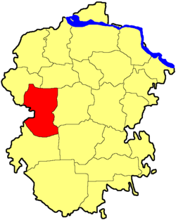 Shumerlinsky District (Russian: Шу́мерлинский райо́н; Chuvash: Çĕмĕрле районĕ) is an administrative[1] and municipal[2] district (raion), one of the twenty-one in the Chuvash Republic, Russia. It is located in the west of the republic and borders with Alikovsky and Krasnochetaysky Districts in the north, Vurnarsky District in the east, Ibresinsky and Poretsky Districts in the south, and with Nizhny Novgorod Oblast on the Sura River in the west. The area of the district is 1,047.6 square kilometers (404.5 sq mi).[3] Its administrative center is the town of Shumerlya (which is not administratively a part of the district).[1] Population: 10,765 (2010 Census);[4] 13,298 (2002 Census);[8] 16,187 (1989 Census).[9]