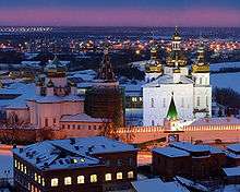 The issue of the relationships between Eastern and Ukrainian Baroque and Siberian Baroque of the 18th century was also researched in the Soviet times.[1] Some found a "Buryat decor" in Irkutsk churches, and if judging their size and construction, they were built by architects of the Northern Russian cities Totma and Veliky Ustyug.[10] According to T. S. Proskuryakova, early Siberian church architecture divides between two "subregional types" – Western Siberian (Tobolsk, Tyumen, the area behind the Ural mountains) and Eastern Siberian (Irkutsk).[11] H. Yu. Kaptikov also uses that sorting system. He sees in Siberian architecture of the 18th century one of the provincial schools in Russian Baroque, along with Totma-Ustyug, Vyatsk and Uralian.[3]