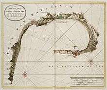 After disembarking reinforcements and supplies at Oran and Mers El Kébir, Francisco de Mendoza's fleet returned to Spain.[14] King Philip II, informed about the development of the siege, decided to reward Martín de Córdoba and Francisco Vivero, commanding officer of Fort San Miguel, for keeping these two crucial strongholds in Spanish hands.[14] In fact, this allowed the capture the following year of Peñón de Vélez de la Gomera, a success which was followed in 1565 by the decisive defense of Malta against the fleet of Turgut Reis.[3] Several years later, in 1574, it was discussed at the Spanish court whether or not to abandon Oran and Mers El Kébir.[15] King Philip II ordered Vespasian Gonzaga Colonna, Prince of Sabbioneta and Duke of Trayecto, to make a comprehensive report about the situation of both towns. Gonzaga advised to abandon Oran but to keep Mers El Kebir.[15] However, marshal Juan Muñoz sent to the king a report by Sancho de Leyva advising to keep both strongholds.[15] Philip II finally opted for the advice of Leyva.[15]