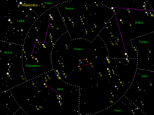 ![]() Octans and its surroundings, with Sigma Octantis in the middle, marked in cyan. (Click on the image to see it full size.) | |