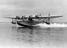 The Sikorsky S-42 was a commercial flying boat designed and built by Sikorsky Aircraft to meet requirements for long-range flying boat laid out by Pan American World Airways (Pan Am) in 1931. The innovative design included wing flaps, variable-pitch propellers, and a tail-carrying full-length hull. The prototype first flew on 29 March 1934, and, in the period of development and test flying that followed, quickly established ten world records for payload-to-height.[1][2] The "Flying Clipper" and the "Pan Am Clipper" were other names for the S-42.