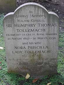 Major General Sir Humphry Thomas Tollemache, 6th Baronet CB, CBE, DL (10 August 1897 – 30 March 1990) was a senior Royal Marines officer and baronet.