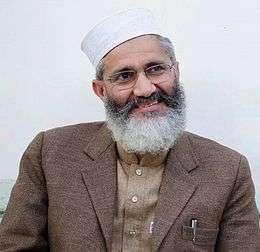 Siraj ul Haq (born 5 September 1962) (Urdu: سراج الحق) also known as Sirajul Haq is a Pakistani Islamist politician who was elected as the chief of Jamaat-e-Islami, a strong rooted politico-religious, Islamic democratic party in Pakistan with objective to establish Islamic laws in Pakistan.[1] He also served as the senior minister of Khyber Pakhtunkhwa, serving in the Pervez Khattak administration.[2] He is the only senator and member of Provincial assembly who has no bank account.