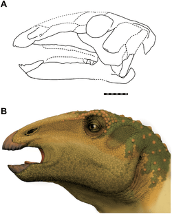 Sirindhorna is known from the holotype NRRU3001-166, an articulated braincase, as well as a number of other skull bones. It was collected in the Ban Saphan Hin site, Suranaree Subdistrict, Nakhon Ratchasima Province, from the Khok Kruat Formation, dating to the Aptian stage of the late Early Cretaceous, about 125-112 million years ago.[1] Sirindhorna was one of eighteen dinosaur taxa from 2015 to be described in open access or free-to-read journals.[2]