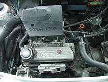 All internal combustion engines used in Felicia are inline four cylinder designs, operate on the four-stroke cycle, are fuel injected, and water cooled. Also a four cylinder carburetor engine (43kw) was available in some countries. The fundamental layout of the Felicia's powertrain included engines mounted at the front of the vehicle, and orientated transversely. The line-up included the old 1.3 litre overhead valve (OHV) Škoda petrol engines, now with Bosch Mono Motronic single-point fuel injection (up until 1997), and Siemens multi-point fuel injection, with two rated power outputs of 40 kilowatts (54 PS; 54 bhp) and 50 kW (68 PS; 67 bhp). There were also two engines sourced from Volkswagen Group: a 55 kilowatts (75 PS; 74 bhp) 1.6 litre petrol engine with Magneti Marelli multi-point fuel injection, and a 47 kilowatts (64 PS; 63 bhp) 1.9 D diesel engine. The 1.6 litre model served as a homologation basis for the Škoda Felicia Kit Car used in the World Rally Championship's F2 class.