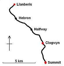 The Snowdon Mountain Railway (SMR; Welsh: Rheilffordd yr Wyddfa) is a narrow gauge rack and pinion mountain railway in Gwynedd, north-west Wales. It is a tourist railway that travels for 4.7 miles (7.6 km) from Llanberis to the summit of Snowdon, the highest peak in Wales.[4]