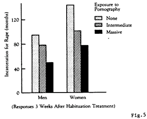 The effects as Gail Dines summarizes Zillman's 1989 study, include "alters perceptions of sexuality; specifically, it fosters presumptions of popularity for less common sexual practices; breeds discontent with the physical appearance and the sexual performance of intimate partners; trivializes rape as a criminal offense and also trivializes sexual child abuse as a criminal offense; and promotes insensitivity toward victims of sexual violence and promotes men's beliefs that they would be capable of committing rape. In addition, habitual male consumers of common pornography appear to be at greater risk of becoming sexually callous and sexually violent toward women than occasional users."[16][17]
