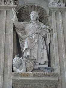 The Roman Catholic Church, under the pontificate of Pope Pius XII canonized Montfort on July 20, 1947.[1] A "founders statue" created by Giacomo Parisini is located in an upper niche of the south nave of Saint Peter's Basilica.