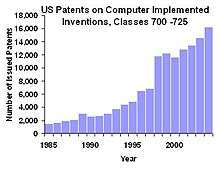 The recent expansion of the Internet and e-commerce has led to many patents being applied for and being granted for business methods implemented in software and the question of whether business methods are statutory subject matter is a separate issue from the question of whether software is. Critics of the Federal Circuit believe that the non-obviousness standard is partly responsible for the large increase in patents for software and business methods.[37] There have been several successful enforcement trials in the United States, some of which are listed in the list of software patents article.