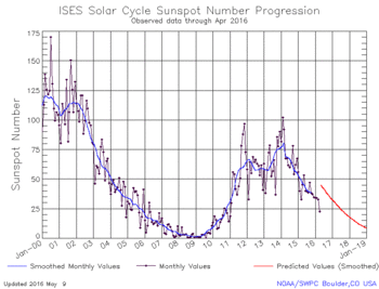 As of June 29 there had been 10 days during 2016 on which there were no sunspots.[80]