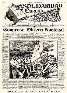The newspaper Solidaridad Obrera was first published on 19 October 1907, in Barcelona, Catalonia (Spain) as the mouthpiece of the Solidaridad Obrera federation and has been published, in different forms up to today, now consisting of an online version as well as a print-version that has a print-run of 5,000 copies that have been distributed for free since 2005.