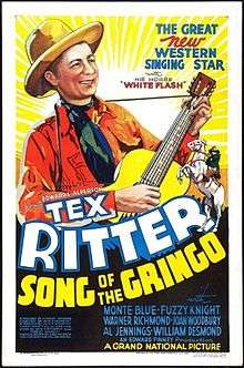 Song of the Gringo is a 1936 American film directed by John P. McCarthy. The film is also known as The Old Corral in the United Kingdom. The film was the debut of singing cowboy Tex Ritter. It was co-written by former outlaw and judge Al Jennings who appears as a judge in the film.