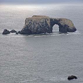 Some of the oldest natural history of this area related to mammals are a rock formation about one mile (1.6 km) south of the Russian River. There is found a sea stack formation with prominent rubbing marks about two to four meters in elevation, a height too high to have been caused by modern bovids. Mammoths are believed to have roamed here as recently as 40,000 years ago, and they are thought to have created these severe rubbing marks.[2] Mammoth fossil remains have been found at Bodega Head at the south end of Sonoma Coast State Park.
