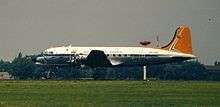 On 10 November 1945, the airline introduced its first inter-continental service, the 3-day Springbok Service, operated by the Avro York, which was routed Palmietfontein–Nairobi–Khartoum–Cairo–Castel Benito–Hurn Bournemouth.[7] A weekly service was initially flown, but this later increased to 6 times weekly due to high passenger demand. The Douglas DC-4 Skymaster debuted with SAA in May 1946 between Johannesburg and Cape Town, which coincided with the introduction of the Douglas DC-3 Dakota on the Johannesburg–Durban route.[7]