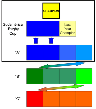 - After restructuring following the 2013 tournament, the champion of each year, will only take part in the final stage of the South America Championship A, called Sudámerica Rugby Cup.