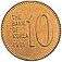 ₩10 | 18 mm | 1.22 g | Copper plated aluminium 48% copper 52% aluminium |