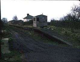The station remained much in the same appearance until its closure.[13] It was thereafter converted into an attractive dwelling complete with central heating, mains water and electricity.[17] It was sold for £8,000 in February 1975 and planning permission was granted for the demolition of the station and the construction of a new bungalow over the trackbed.[18][19] Although a large section of the embankment near the station has been removed by farmers, it is possible to reach the site via a public footpath which runs parallel to the former line.[17] The station house still remains and is now named "Old Crossing".[11] In 1992, the old food store building, long since out-of-use, was still standing.[19]