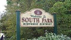 South Park Historic District is a national historic district located at Morgantown, Monongalia County, West Virginia. The district includes 501 contributing buildings and 5 contributing structures in a primarily residential area south of downtown Morgantown. The district is characterized by tightly packed dwellings on a hillside and represent a variety of post-Victorian architectural styles popular between 1900 and 1940. Notable buildings include the Morgantown High School, First Church of Christian Science, Crestholm Pharmacy, and Bobbette's Confectionary.[2]