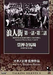 Sozenji Baba (崇禅寺馬場 Sozenji Baba) is a 1928 black and white Japanese silent film directed by Masahiro Makino. It is an ambitious film in which Makino deals with the difficult issue of the agony of a person who killed for revenge.