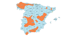 Map of Spain, showing the principal areas of maqui activity in orange.