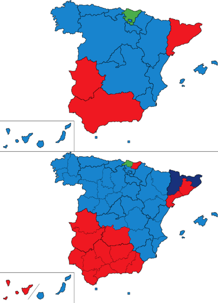 | Most voted party by autonomous community and province.