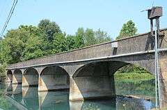The Spring River Bridge, is a historic bridge carrying Riverview Drive over the Spring River south of Mammoth Spring, Arkansas. The bridge is a concrete girder structure with five spans, and a total length of 222 feet (68 m). The bridge is about 10 feet (3.0 m) wide, with simple cast concrete guard rails. The bridge rests on concrete abutments and piers. The bridge was built in 1916 by H. B. Walton as part of a county effort to improve its road infrastructure and is a well-preserved local example of early concrete bridge construction.[2]