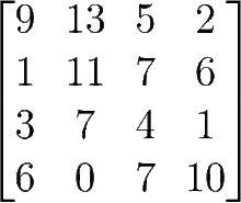 The entries aii (i = 1, ..., n) form the main diagonal of a square matrix. They lie on the imaginary line which runs from the top left corner to the bottom right corner of the matrix. For instance, the main diagonal of the 4-by-4 matrix above contains the elements a11 = 9, a22 = 11, a33 = 4, a44 = 10.
