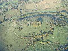 The top of the hill is ringed by the ramparts of an Iron Age hill fort, which is a scheduled ancient monument. In the centre a copse of beech trees contains the site of the 12th-century chapel of St. Catherine. There is also a mizmaze, probably cut between 1647 and 1710.[2]
