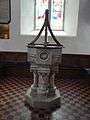 To the south of it is the little mortuary chapel containing a fine statue of Sir Robert Holmes, died 1692, and many memorials to the Holmes family. There is a wall tablet by Nollekens to Captain John Urry, 1802, and in the floor are 17th-century grave slabs of the Hide family and to Peter Pryavlx, 1644. On the front of the gallery at the west end are brass tablets commemorating the different charitable bequests, and in the north aisle is the royal achievement of King George I, 1715.[4]