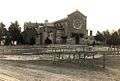 In 1913, further renovations were made. The two towers on the front of the church were razed due to the problems with the soft crumbling stone. The interior of the church was of Tuscan design. The interior has high Roman arches with two domes, one over the sanctuary and one over the center of the church. The sanctuary is 30 feet square under a dome 45 feet in height. The interior walls are decorated with murals and paintings. Seven small altars are located on the sides of the nave.[16] The front of the church was expanded through the addition of two side altars and a vestibule, extending the length by 40 feet. The facade was changed from a Tuscan Renaissance style to the Romanesque style. Later additions include the Miraculous Medal Shrine in 1930, and the current Angelus bell tower which was constructed in 1980.[17]