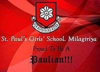 St. Paul’s Girls School, Milagiriya is a National school for girls situated in Milagiriya in Colombo. It was initially established as a Parish school affiliated to St. Paul's Church (Milagiriya). Today the school is a multi-religious community and all students, irrespective of their religion, come together and organise Buddhist, Christian and Islamic religious programs daily and annually [1][2]